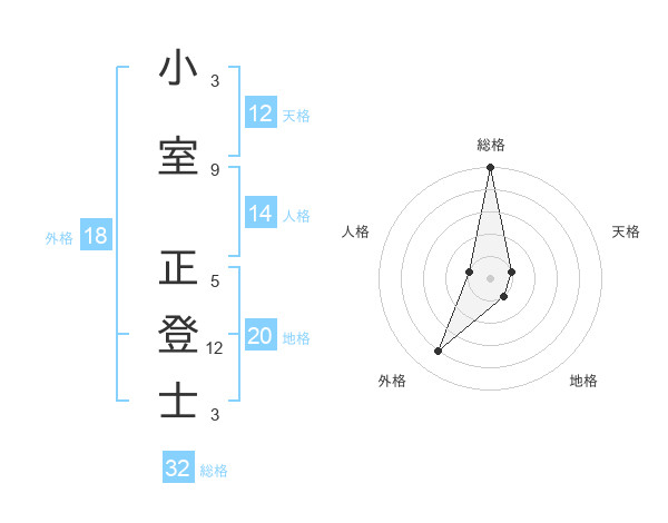 小室 正登士さんの天格は12画の1点!