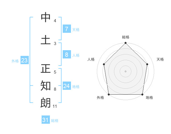 中土 正知朗さんを姓名の画数から五運を鑑定