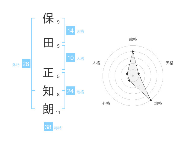保田 正知朗さんを姓名の画数から五運を鑑定