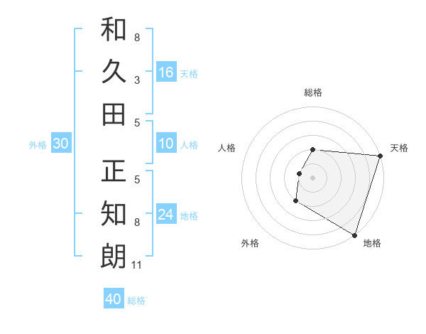 和久田 正知朗さんを姓名の画数から五運を鑑定