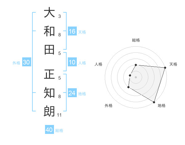 大和田 正知朗さんを姓名の画数から五運を鑑定