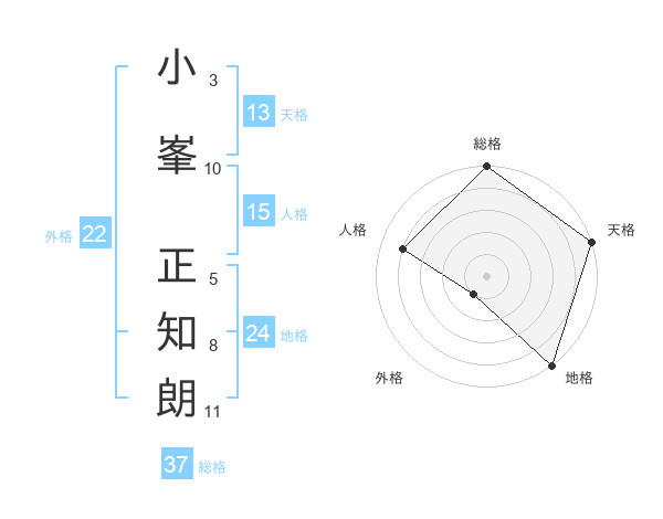小峯 正知朗さんを姓名の画数から五運を鑑定