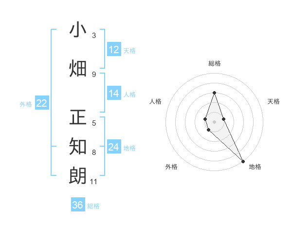 小畑 正知朗さんを姓名の画数から五運を鑑定