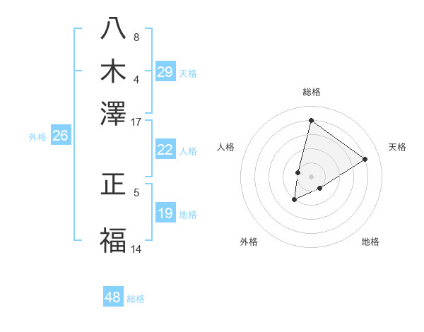 八木澤 正福さんの総格は48画の4点!