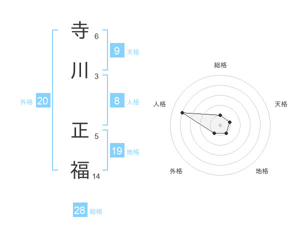 寺川 正福さんの総格は28画の1点!