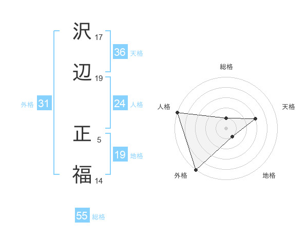 沢辺 正福さんの外格は31画の5点!