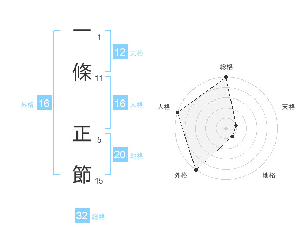 一條 正節さんの外格は16画の5点!