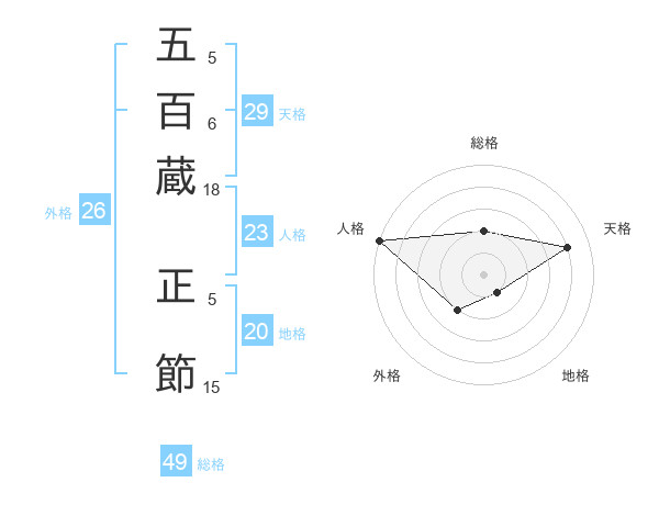 五百蔵 正節さんの天格は29画の4点!