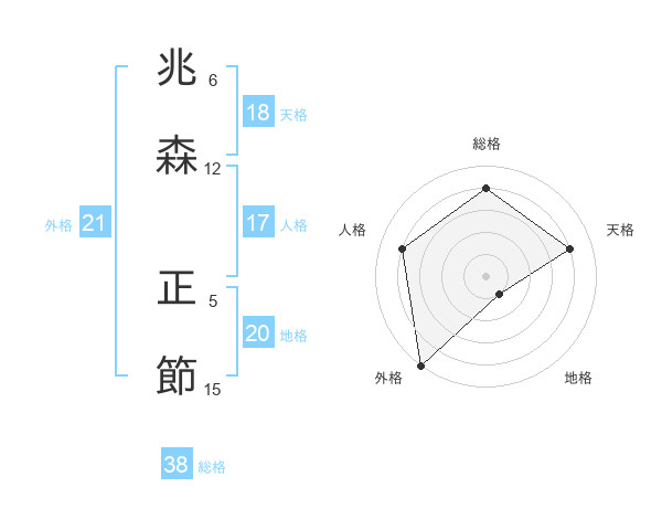 兆森 正節さんの外格は21画の5点!
