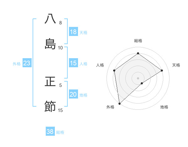 八島 正節さんの総格は38画の4点!