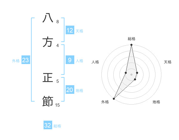 八方 正節さんの総格は32画の5点!