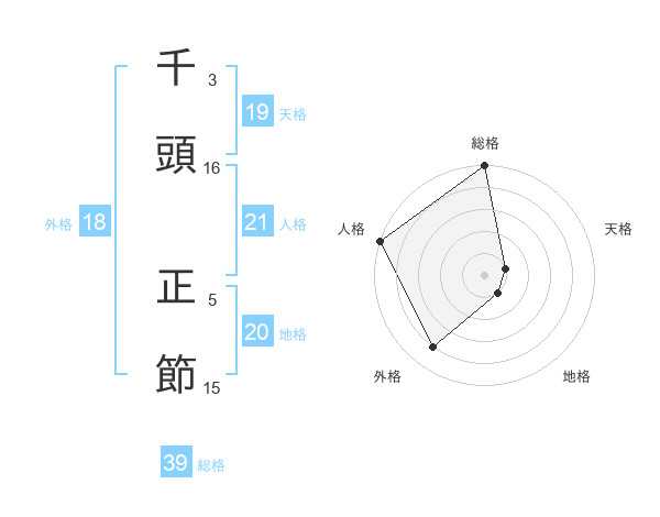 千頭 正節さんの天格は19画の1点!
