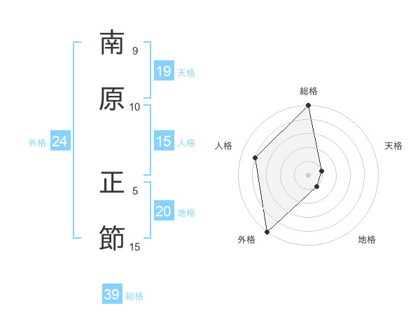 南原 正節さんの総格は39画の5点!