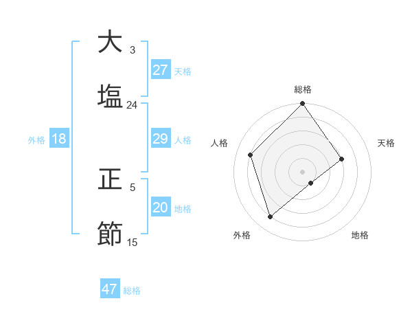大塩 正節さんの総格は47画の5点!