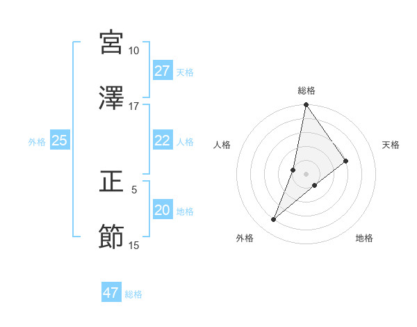 宮澤 正節さんを姓名の画数から五運を鑑定