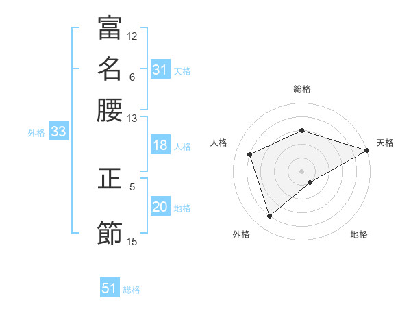 富名腰 正節さんの総格は51画の3点!
