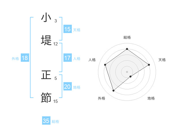 小堤 正節さんの総格は35画の4点!