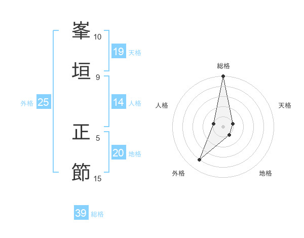 峯垣 正節さんの総格は39画の5点!