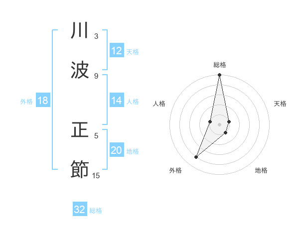 川波 正節さんの総格は32画の5点!