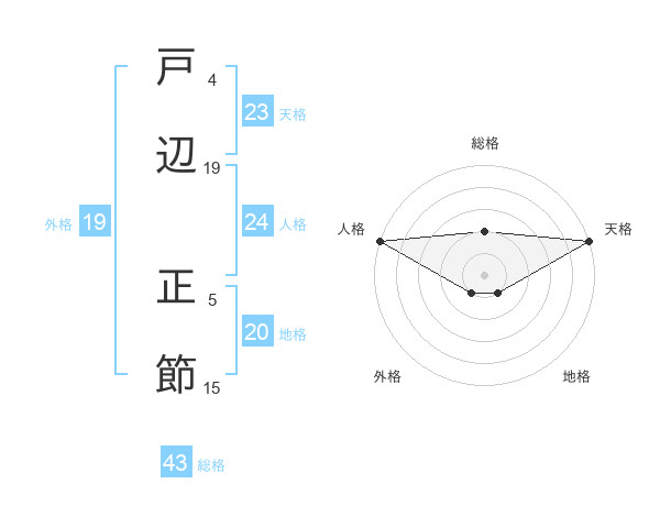 戸辺 正節さんの総格は43画の2点!