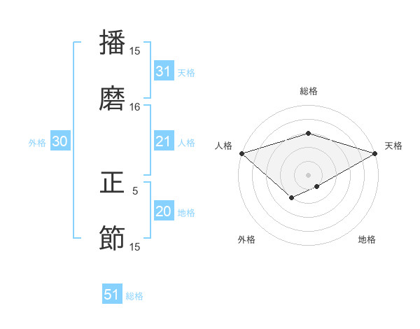 播磨 正節さんの天格は31画の5点!