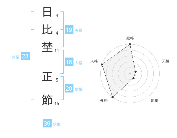 日比埜 正節さんを姓名の画数から五運を鑑定