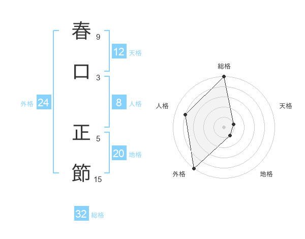 春口 正節さんの総格は32画の5点!