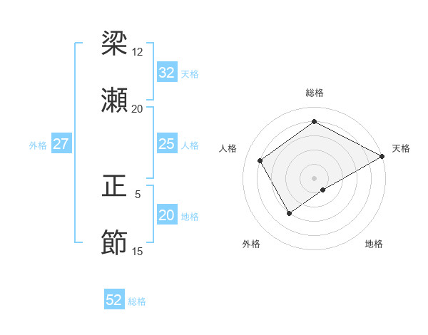 梁瀬 正節さんの総格は52画の4点!