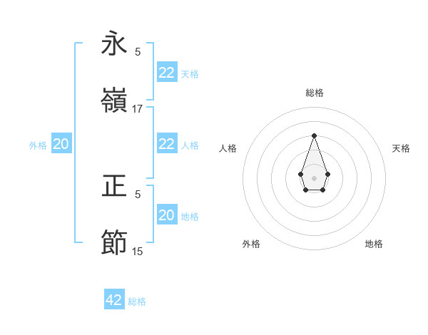永嶺 正節さんの総格は42画の3点!