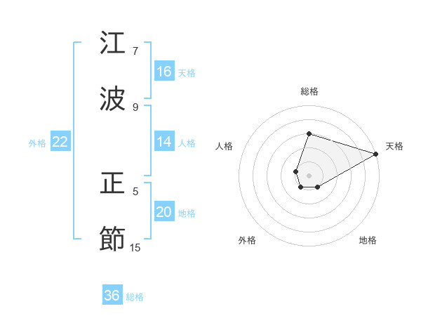 江波 正節さんの天格は16画の5点!