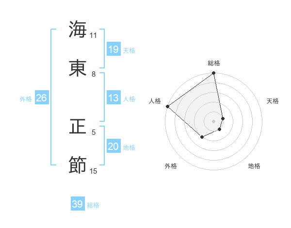 海東 正節さんの天格は19画の1点!