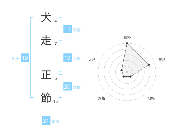 家系が持つ宿命的な運勢を表します。祖先から受け継いだ苗字ですので自分の力が及びません。家柄を象徴します。
