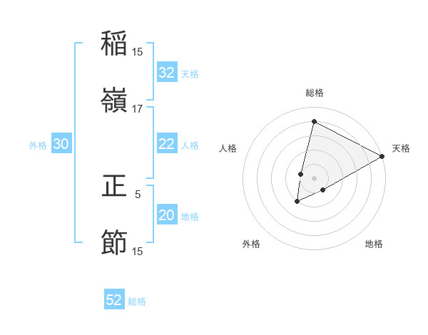 稲嶺 正節さんの総格は52画の4点!