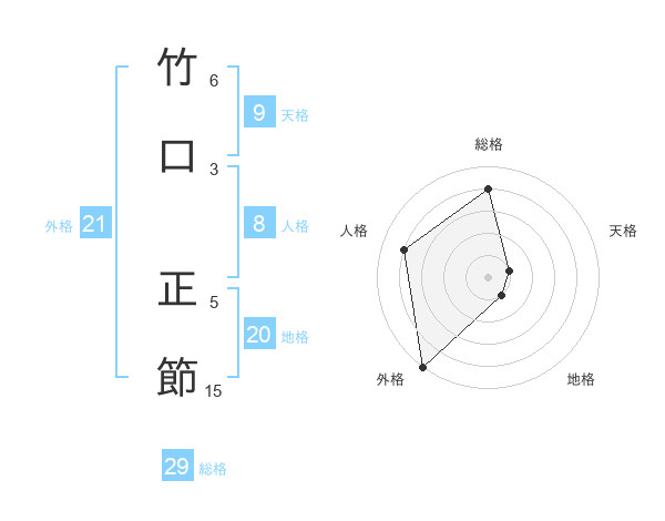 竹口 正節さんの総格は29画の4点!