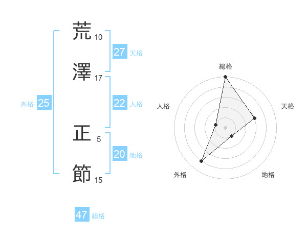 荒澤 正節さんの総格は47画の5点!