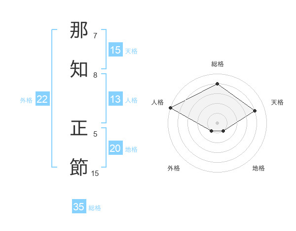 那知 正節さんの総格は35画の4点!