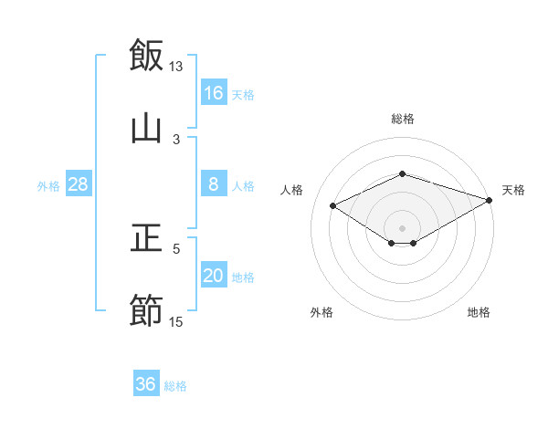 飯山 正節さんの天格は16画の5点!