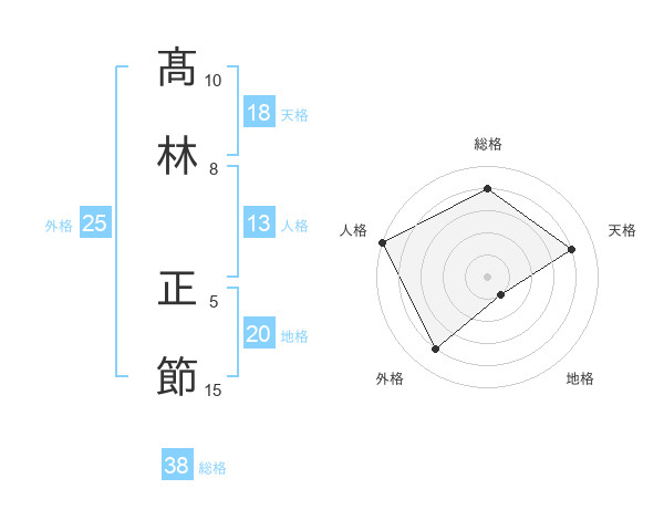 髙林 正節さんの総格は38画の4点!