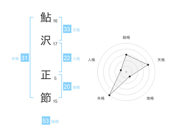 鮎沢 正節さんの外格は31画の5点!