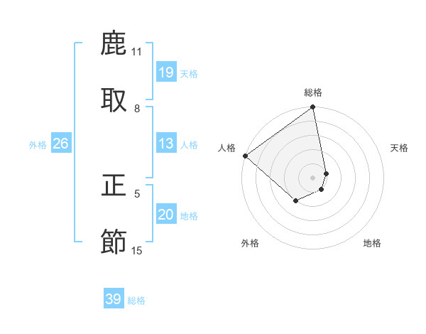 鹿取 正節さんの総格は39画の5点!