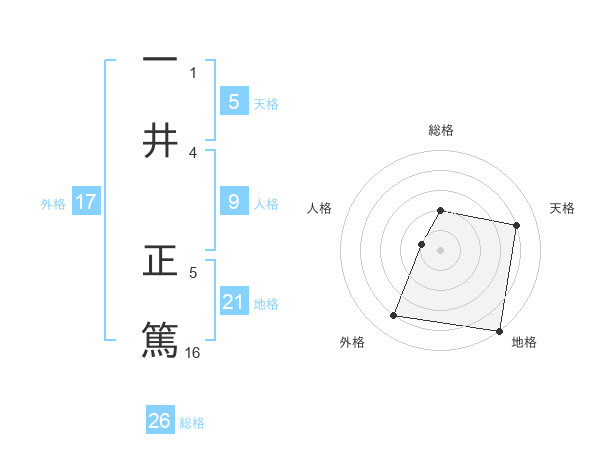 一井 正篤さんを姓名の画数から五運を鑑定