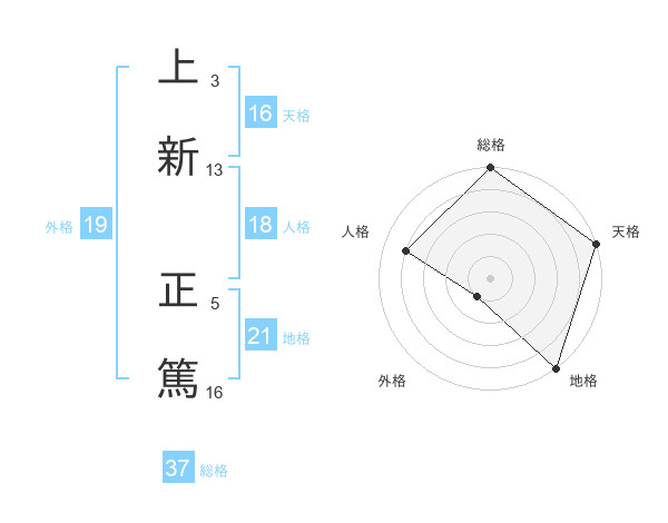 上新 正篤さんの総格は37画の5点!
