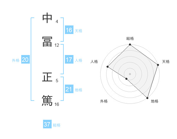 中冨 正篤さんの天格は16画の5点!