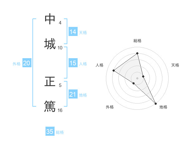 中城 正篤さんの地格は21画の5点!