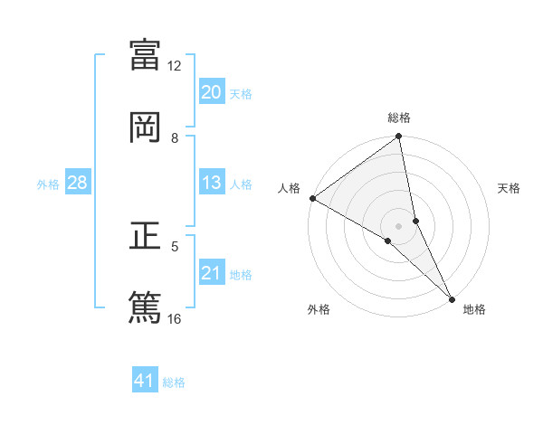 富岡 正篤さんの地格は21画の5点!
