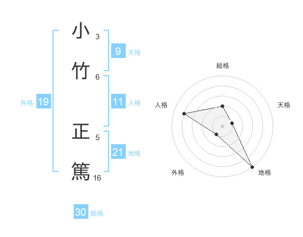 小竹 正篤さんの総格は30画の2点!