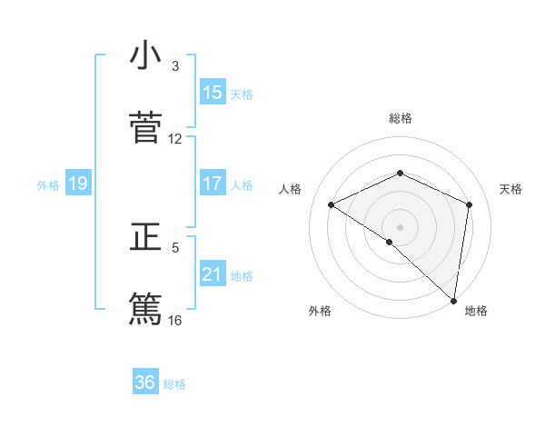 小菅 正篤さんの地格は21画の5点!