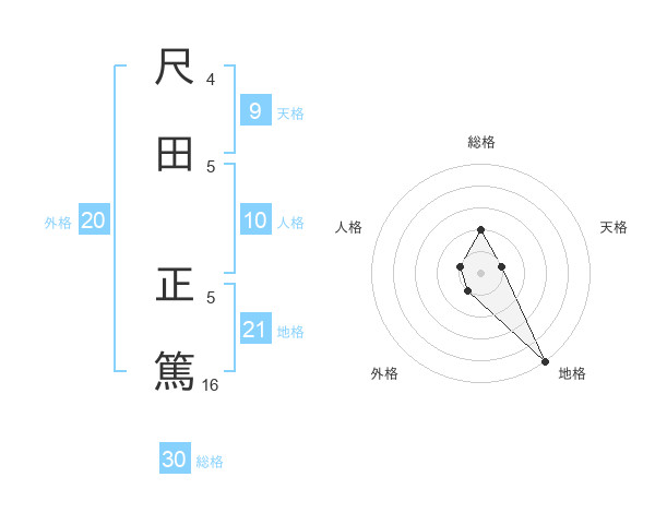 尺田 正篤さんの総格は30画の2点!