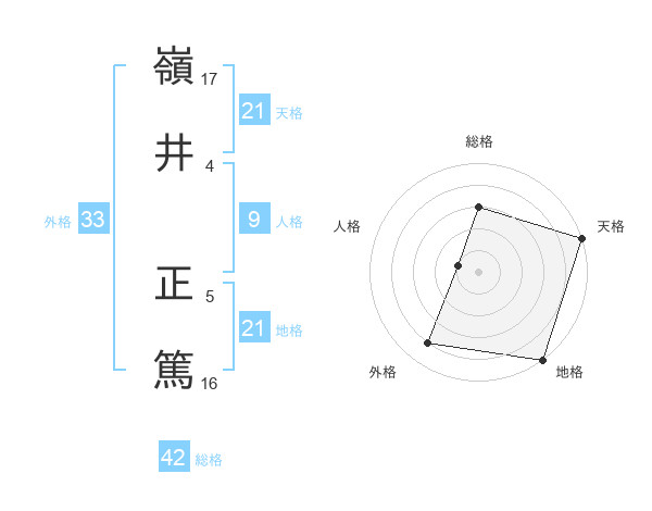 嶺井 正篤さんの天格は21画の5点!