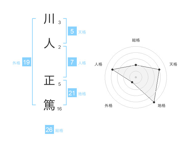 川人 正篤さんの天格は5画の4点!